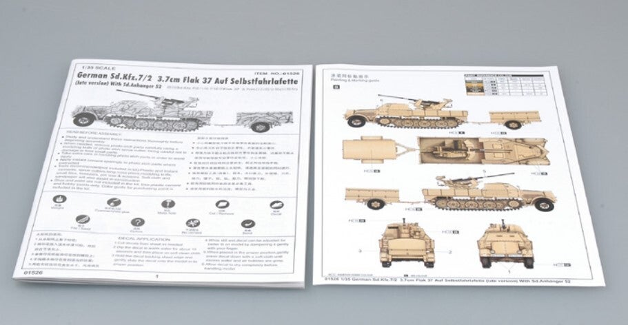 TRUMPETER : REF : 01526 : 1:35 : German 3.7cm Flakvierling 37 Auf Selbstfahrlafette Sd.Kfz.7/2 (Late Version) (With Sd. Anhänger) (Anti-aérien)