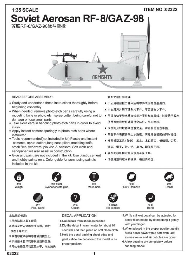 TRUMPETER : REF : TRU02322 : 1:35 : Soviet : Aerosan RF-8 ("GAZ-98")