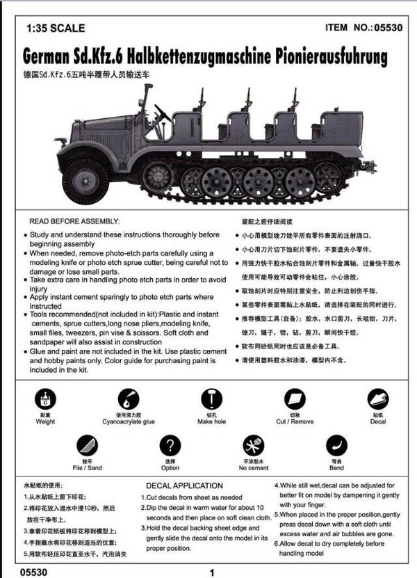 TRUMPETER : REF : TRU05530 : 1:35 : German Sd.Kfz.6 Halbkettenzugmaschine Pionierausfuhrung (Tracteur semi-chenillé, version pionnier) (Half-track)