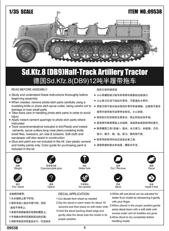 TRUMPETER : REF : TRU09538 : 1:35 : German Sd.Kfz.8 (DB9) Artillery Tractor (Military Engineering / Génie Militaire) (Half-track)