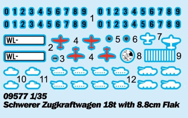TRUMPETER : REF : TRU09577 : 1:35 : German Schwerer Zugkraftwagen 18 T (with 8.8cm Flak) (Half-track) (Antiaérien)