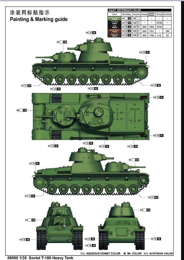TRUMPETER : REF : TRU09590 : 1:35 : Soviet : T-100 Heavy Tank (Prototype)