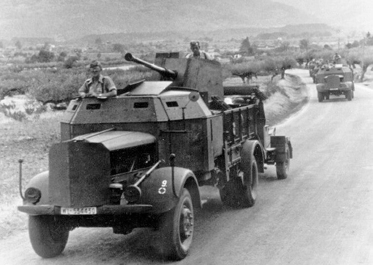 The Schwere Geländegängiger Lastkraftwagen 4.5t Mercedes-Benz L4500A als Flakwagen was a self-propelled anti-aircraft gun (SPAAG) used by the German military during World War II. It was built by converting a standard Mercedes-Benz L4500A heavy-duty truck into an anti-aircraft vehicle by mounting either a 2 cm, 3.7 cm, or even a 5 cm anti-aircraft gun on the truck’s bed. This was a cheap conversion of a standard heavy-duty truck produced by Mercedes-Benz that could guarantee an adequate defense to German columns. It showed its limits due to the partial armor that protected only the most sensible parts of the truck, exposing the crew during the fighting. Together with other wheeled SPAAGs, it was intended as a stopgap solution until properly designed anti-aircraft vehicles were developed.
