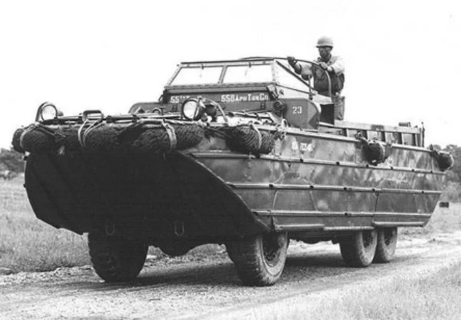 The DUKW 353 is an amphibious vehicle designed to unload cargo ships in the absence of ports. It was designed in 1941 by Sparkman and Stephens Inc. for the U.S. Army, based on the GMC (General Motors Corporation) GMC CCKW 6x6. During World War II, 21,247 units were produced.