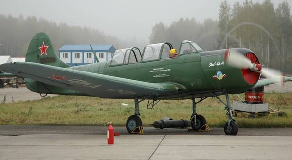 A member of the second generation of Russian aircraft designers and best known for fighter designs, Aleksandr S. Yakovlev always retained a light aircraft design section. In May, 1945 Yakovlev initiated the design of the Yak-18 two-seat primary trainer. He designed it to replace the earlier Yakovlev UT-2 and Yak-5 in service with the Soviet Air Force and DOSAAF(Voluntary Society for Collaboration with the Army, Air Force and Navy, which sponsored aero clubs throughout the USSR). The new aircraft flew a year later powered by a Shvetsov M-11 five-cylinder radial engine and featuring a retractable tailwheel landing gear. The design proved exceptionally easy to build and maintain and it continues in production today, 55 years later, in two of its many variants: the four-seat Yak-18T and the two-seat Yak-54. The Yak-18 became the standard trainer for Air Force flying schools and DOSAAF, and is currently in wide use in China as well as many other nations.