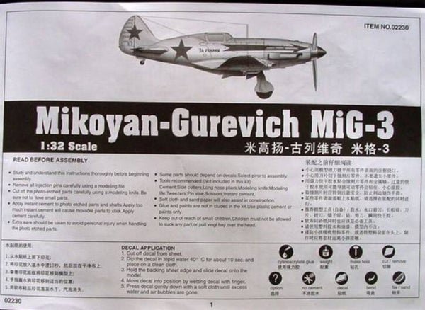 TRUMPETER : REF : TRU02230 : 1:32 : AIRCRAFT KIT : Soviet : Mikoyan-Gurevich MiG-3