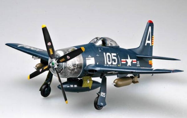 The F8F “Bearcat” was the speediest prop-driven fighter that Grumman ever produced, but it arrived too late to see combat in WWII. It was intended as an interceptor fighter, operating from carriers. In modern vernacular, it might have been called the "Hellcat Lite"; The F8F featured all-metal construction, a cantilever low-wing monoplane design, folding wings for carrier operations, self-sealing fuel tanks, four .50 caliber machine guns and power by Pratt & Whitney R-2800 radial engine. The US Navy order two prototypes, XF8F-1. in November, 1943. First flown nine months later, the Bearcat prototype outperformed its heavier predecessor, notably with a thirty percent better climb rate. Grumman then delivered the first production model F8F-1.in February, 1945, only six months after first flight! The Navy's order totaled 2,033 airplanes, and Grumman contracted with General Motors to build the Bearcat under license, But only a few Bearcats had been delivered to the Navy when the end of the war halted production. Grumman has been build a total of 1,266 Bearcats of all type. Of which 765 F8F-1's 100 F8F-1B'. At least 24 US Navy squadrons flew the Bearcat, some until as late as 1952, after which some were sold to the French Air force for combat operations in Vietnam. Another 129 Bearcats were sold to the Thai Air Force.