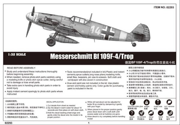 TRUMPETER : REF : TRU02293 : 1:32 : AIRCRAFT KIT : German Messerchmitt Bf 109F-4/Trop