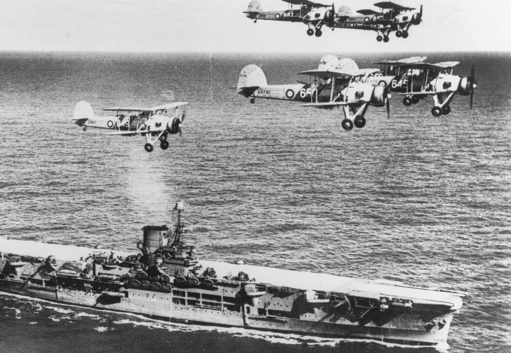 The Swordfish was a torpedo bomber built by the Fairey Aviation Company and used by the Fleet Air Arm of the Royal Navy during World War II. It was outdated by 1939, but achieved some spectacular successes during the war, notably the destruction of the Regia Marina (the Italian Navy) in the Battle of Taranto and the famous crippling of the Bismarck. It was operated primarily as a fleet attack aircraft, however, during its later years it was also used as an anti-submarine and training craft. Almost 2,400 Swordfish had been built, 692 by Fairey and 1,699 in Sherburn by the Blackburn Aircraft Company, The most numerous version was the Mark II, of which 1,080 were made.