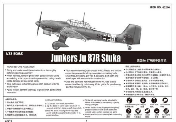 TRUMPETER : REF : TRU03216 : 1:32 : AIRCRAFT KIT : German Junkers Ju 87R ("Stuka") ("Reichweitenausführung")