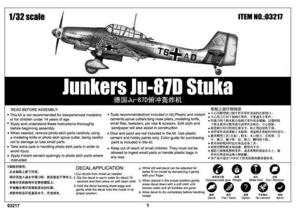 TRUMPETER : REF : TRU03217 : 1:32 : AIRCRAFT KIT : German Junkers Ju-87D ("Stuka") ("Dora")