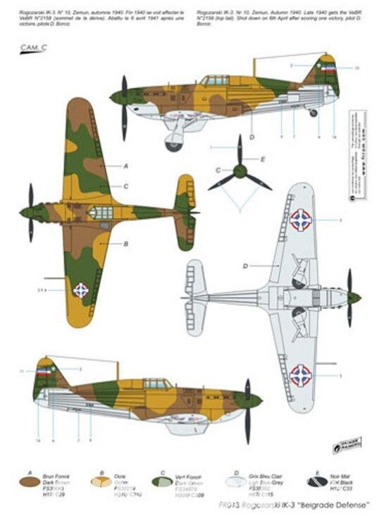 FRROM : REF : FRR0013 : 1:72 : AIRCRAFT KIT : "Yougoslavie" : Rogozarski : IK-3 (Belgrade Defense)