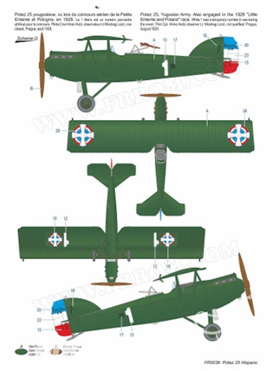 - Camo D : Potez 25 yougoslave, vu lors du concours aérien de la Petite Entente et Pologne, en 1928. Le 1 blanc est un numéro provisoire attribué pour le concours. Pilote Cne Hinko Hubl, observateur Lt Miodrag Loyik, non classé. Prague, août 1928