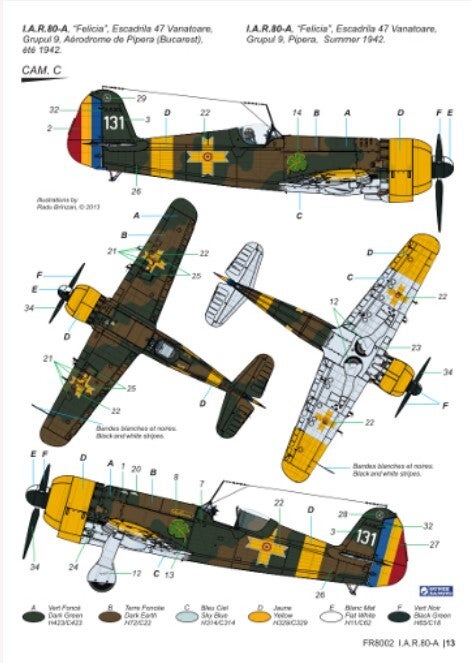 - Cam C, IAR-80A n°131, "Felicial", escadrille 47, groupe 9, Pipera (Bucarest), été 1942.