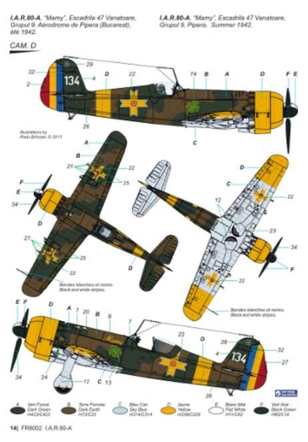 - Cam D, IAR-80A n°134, "Mamy", escadrille 47, groupe 9, Pipera (Bucarest), été 1942.