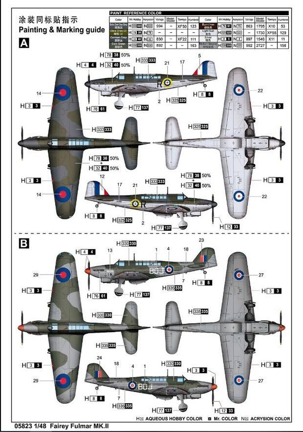 TRUMPETER : REF : TRU05823 : 1:48 : AIRCRAFT KIT : UK (RAF) : Fairey Aviation : Fairey Fulmar MK.II