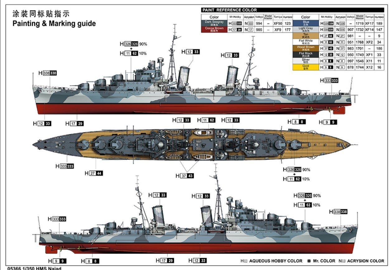TRUMPETER : REF : TRU05366 : 1:350 : UK : HMS Naiad (Dido-Class light Cruiser) (Croiseur Léger Classe Dido)