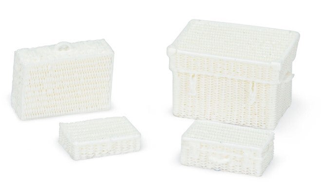 Four highly detailed wicker suitcases, ideal for placement next to figures or on civilian vehicles.