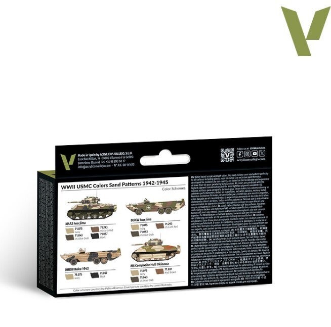 The set includes all the tones used to depict the different camouflage schemes specifically used by the USMC on its vehicles in combat zones such as Okinawa or Iwo Jima.