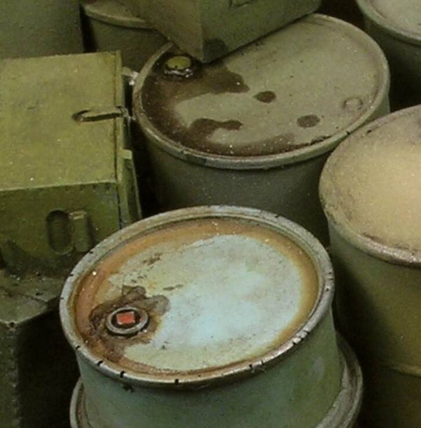 Applications: Reproduces the blue-black shade of intensity observed in heavy oils, lubricants, on barrels in a truck bed and round marks left by barrels on the ground, left by the flame throwers and combat vehicles.