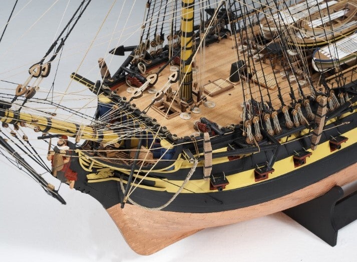 Relive the epic Battle of the Nile with the detailed model of the H.M.S. Vanguard (1787), one of the most famous 74-gun ships of the line in history.