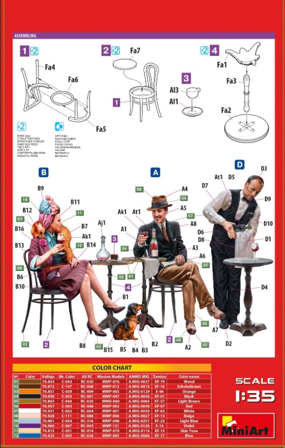 MINIART : REF : MINIART38058 : 1:35 : Cafe Visitors (1930-40'S) (3 Fig + 1 dog)