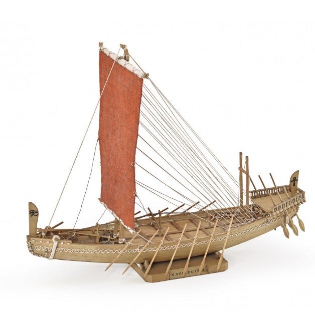 Perfect for history lovers and modeling enthusiasts, this kit faithfully reproduces one of the ships that sailed the Red Sea and the Mediterranean, in search of wood, myrrh, and the precious gold alloy known as “electrum”.