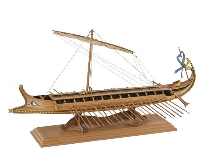 Découvrez la magnificence de la bireme grecque avec ce kit de construction détaillé.