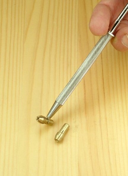 This metal-cased pick-up tool is ideal for retrieving and holding parts. The three spring loaded-steel grips hold any shape up to 30mm. Simple thumb controlled plunge action makes this a very handy, easy-to-use tool even in the confined areas.