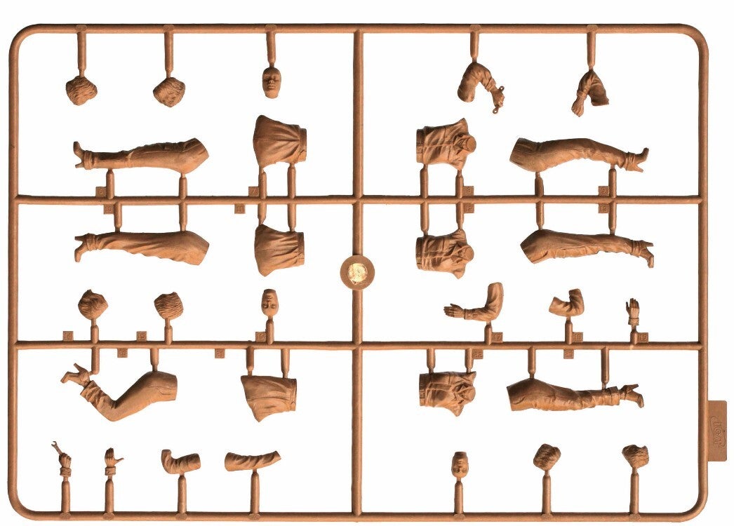 The set includes 30 parts for assembly of 3 figures of three American female mechanics of 1910s period.