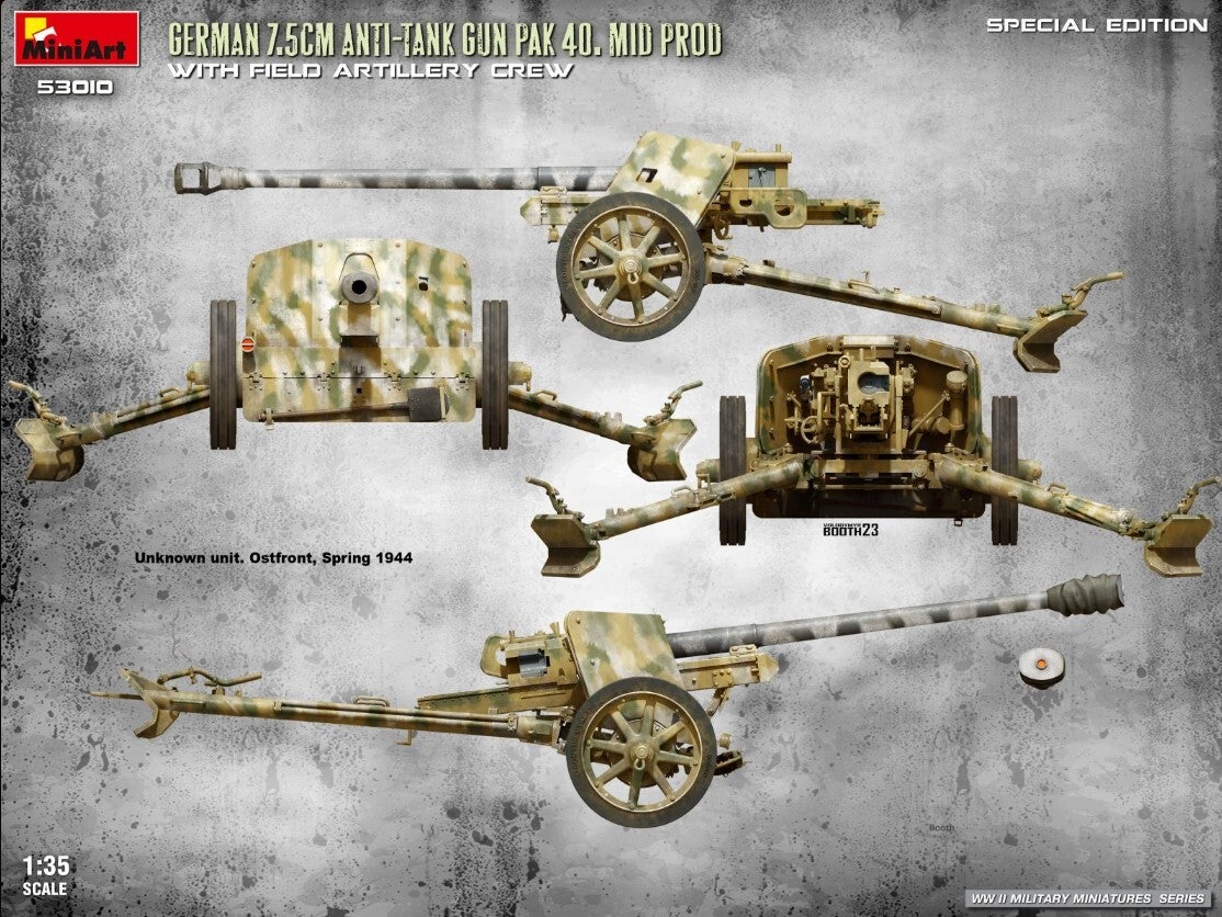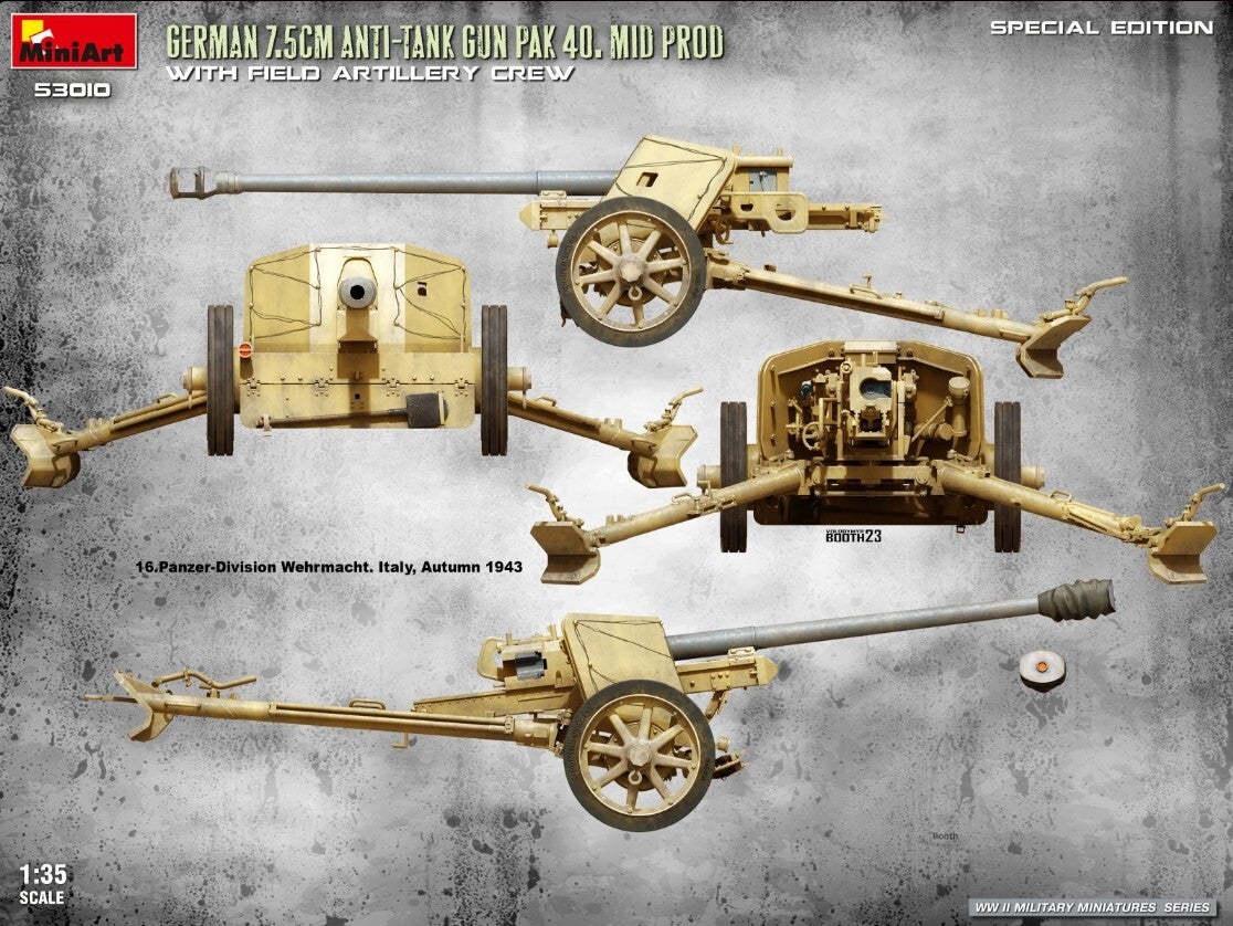 MINIART : REF : MINIART 53010 : 1:35 : German 7.5cm Anti-Tank Gun Pak 40 (Mid Prod W/Artillery Crew) (Fig.4) (SPECIAL EDITION)