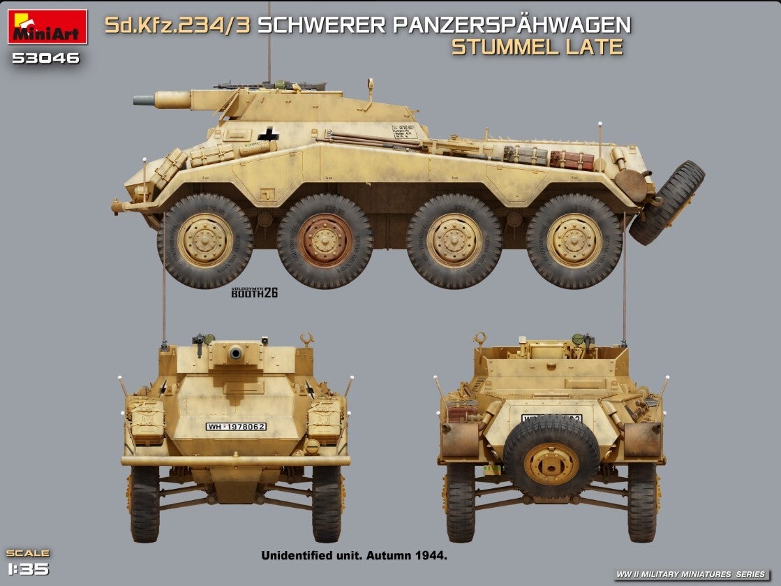 MINIART : REF : MINIART 53046 : 1:35 : German Sd.Kfz.234/3 Schwerer Panzerspähwagen (Stummel Late)