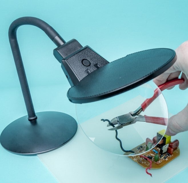 A tabletop magnifier ideal for reading, writing, study & hobby.