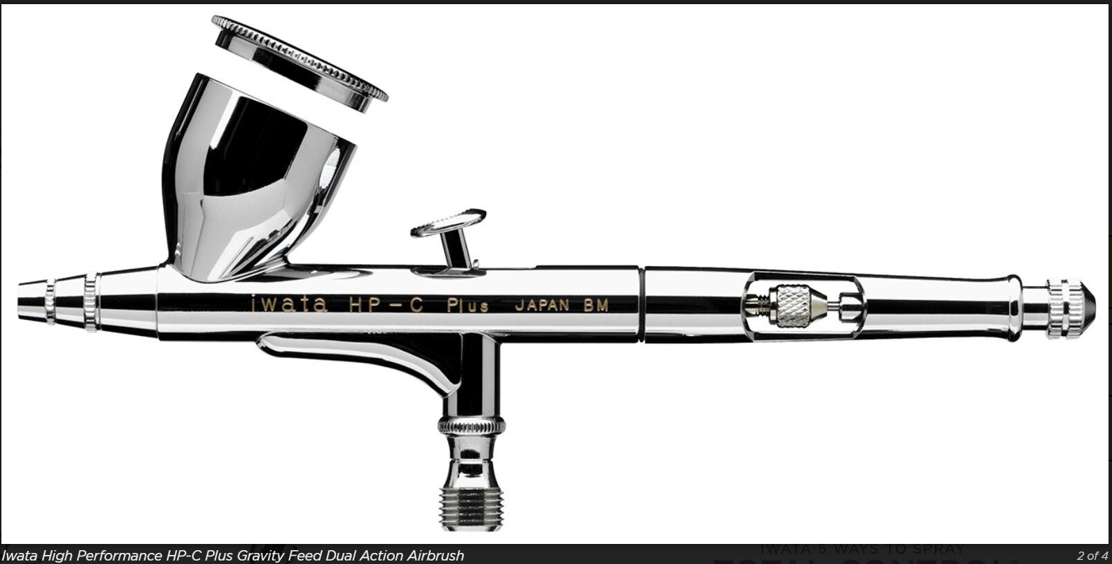 Offering total control for fine detail spraying, Iwata's High Performance Plus Series airbrushes are designed around the legendary Iwata HP Series which established the Iwata name in the creative community over 50 years ago. Iwata High Performance HP-C Plus has a generous 0.24 oz / 7 ml fluid cup that is ideal for color mixing.