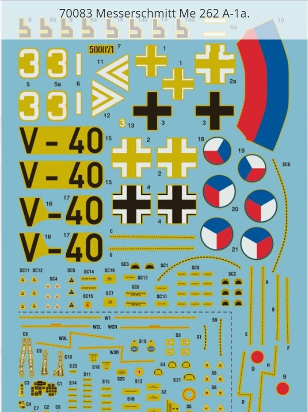 - Messerschmitt Me 262 A-1a, W.Nr. 500071 “White 3”, Oberfähnrich (officer cadet) Hans Guido Mutke, 9./JG 7, München-Riem / Fürstenfeldbruck airfields, Germany, April 1945.